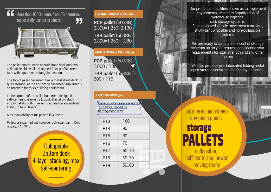 Складные складские паллеты для хранения автошин, колес и любых штучных товаров. Допускают механизированное перемещение и складирование.