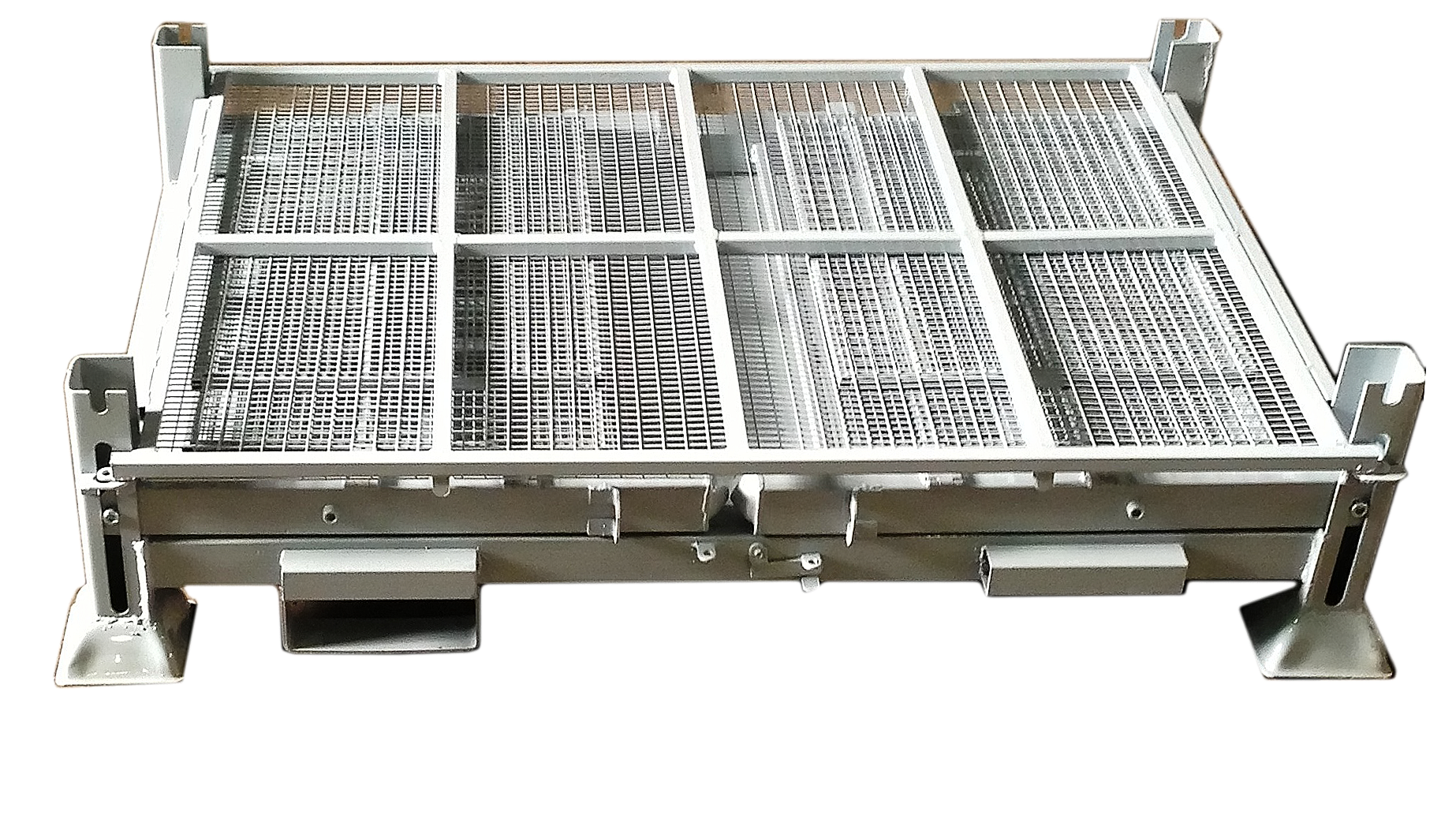 В углах основания паллет предусмотрены самоцентрирующиеся ножки. Допустимо складирование пустых паллет в сложенном или разложенном виде не более, чем в 20 рядов.
